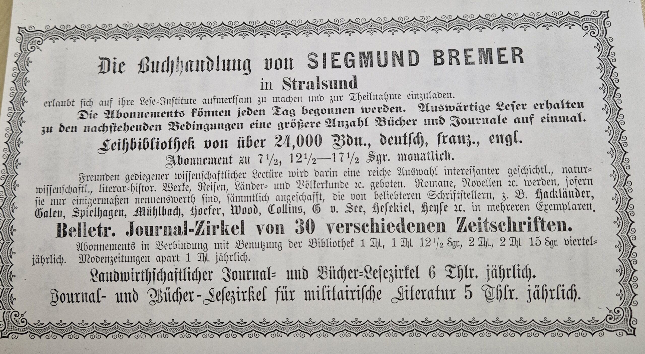 - Stadtarchiv Stralsund, Wohnanzeiger Stralsund, 1864-1905
